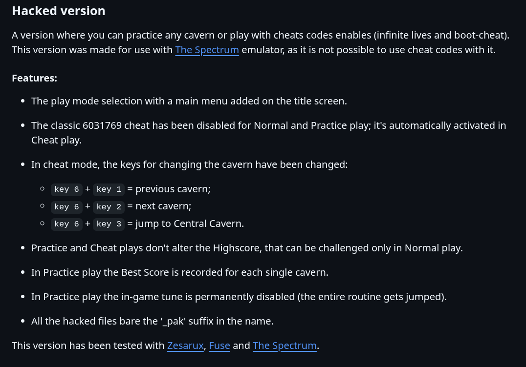 Thus, to play and practice Manic Miner I had two possible choice: